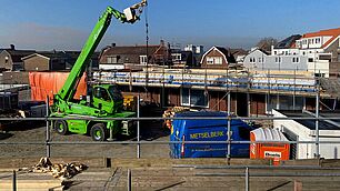 Aan de Tramstraat werkt de aannemer hard aan de nieuwbouw van de dertien multifunctionele woningen. Aan de kant waar de negen woningen komen, is al aardig wat te zien. Het metselwerk is inmiddels klaar tot aan de verdiepingsvloer. Aan de andere kant van de straat is inmiddels de vloer op de begane grond gestort. Nu volgt het plaatsen van de binnenwanden.