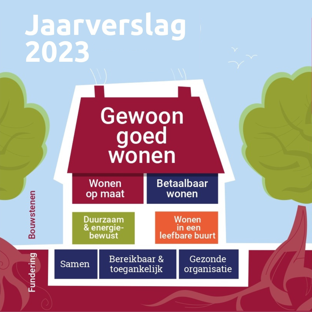 Dit jaarverslag vloeit voort uit ons koersplan ‘GeWOON GOED wonen’. In dit plan hebben we de koers uitgezet voor de periode 2023 – 2027. In ons koersplan staat dat we gaan en staan voor ‘gewoon goed wonen’. Wij verstaan daaronder: wonen in een betaalbaar en duurzaam huurhuis dat bij je past en dat staat in een leefbare buurt waar je je thuis voelt. Dit zien wij als de ‘bouwstenen’ voor goed wonen. Doordat onze ‘fundering’ stevig is, kunnen we onze ‘bouwstenen’ voor goed wonen realiseren. Met elkaar zorgen zij voor een fijn thuis, vooral voor diegenen die op de sociale huursector zijn aangewezen.