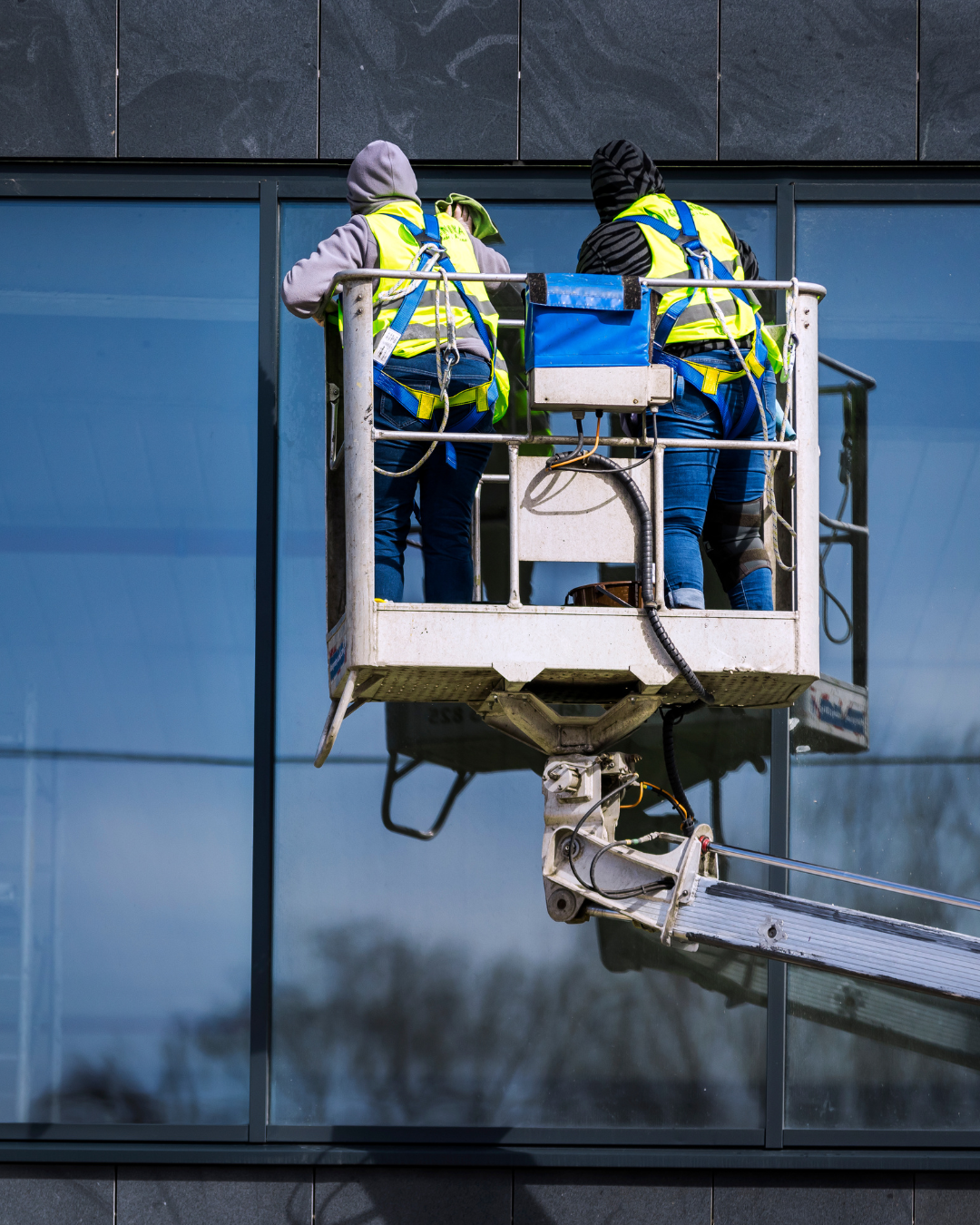 Vier keer per jaar zeemt de glazenwasser het onbereikbare glas aan de buitenkant van de woongebouwen. Schoonmaakbedrijf De Watertoren Axel voert het werk uit. Zij doen dit in opdracht van Schoonmaakbedrijf Both.