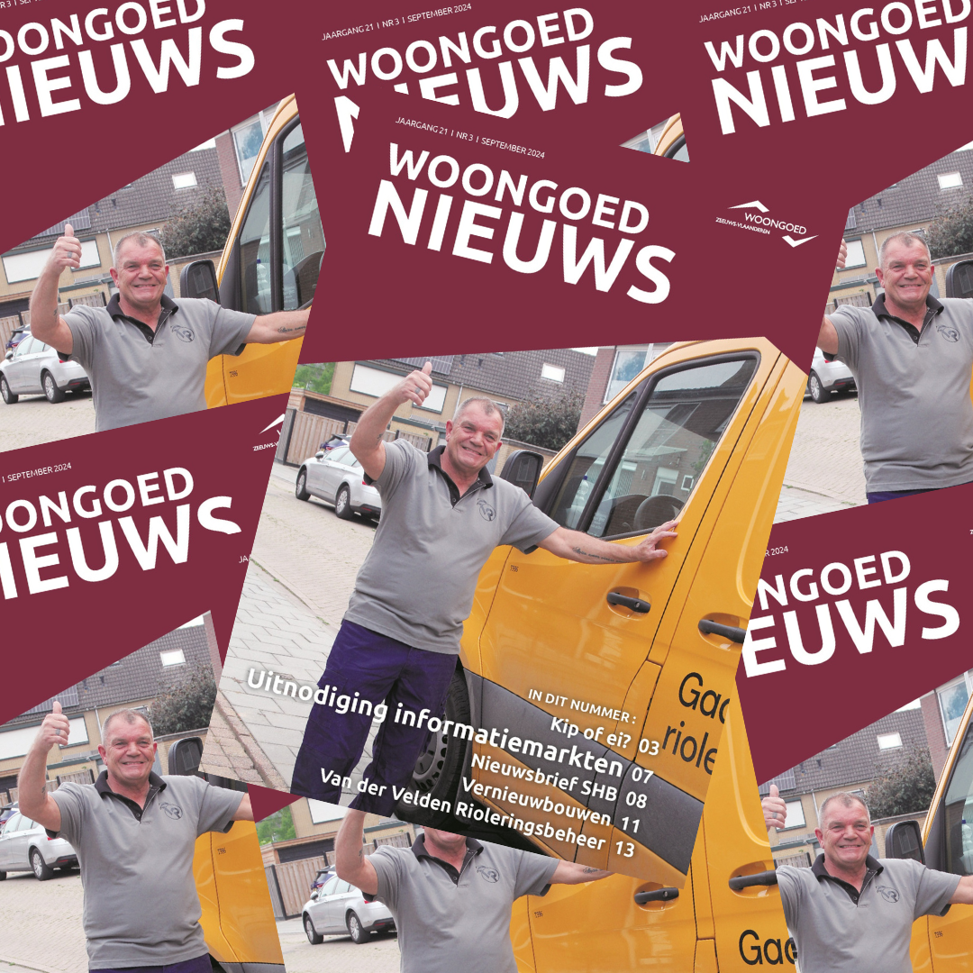Vanaf vandaag valt bij de bewoners weer het WoongoedNieuws op de deurmat. WoongoedNieuws is ons bewonersmagazine waarin we u vier keer per jaar op de hoogte houden van wat er speelt bij Woongoed Zeeuws-Vlaanderen. Zowel praktische zaken maar ook verhalen van huurders, collega's of externe bedrijven waar wij mee samenwerken.